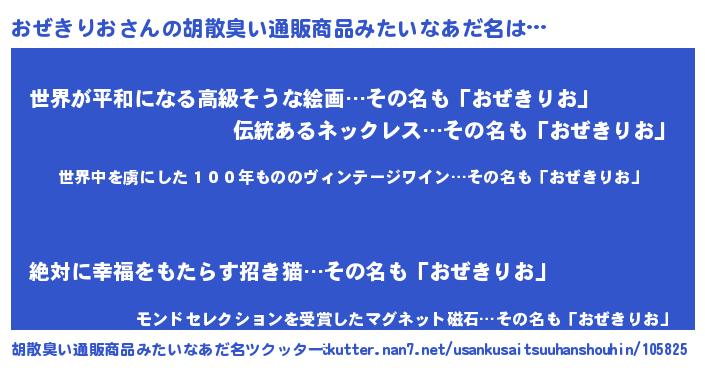 | 男性向けラノベタイトル風あだ名 | 『転生したらおぜきりおだった件』 |