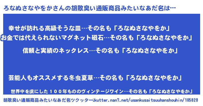 | 意味不明あだ名 | 『とにかく怪しいろなぬさなやをか』 |