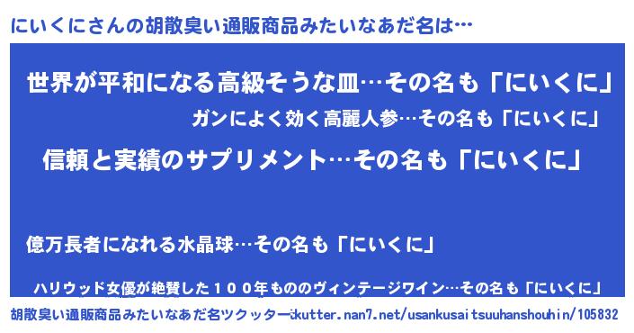 | 意味不明あだ名 | 『とにかく怪しいにいくに』 |