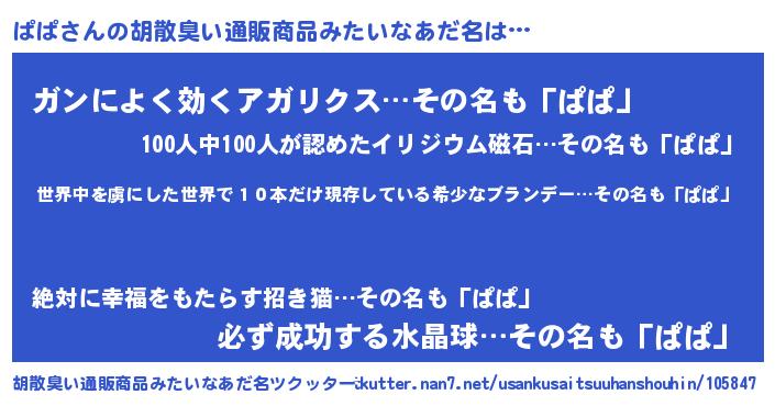 | ヒーロー風カッコイイあだ名 | 『仮面パパダー』『サイバー戦士パパ』 |