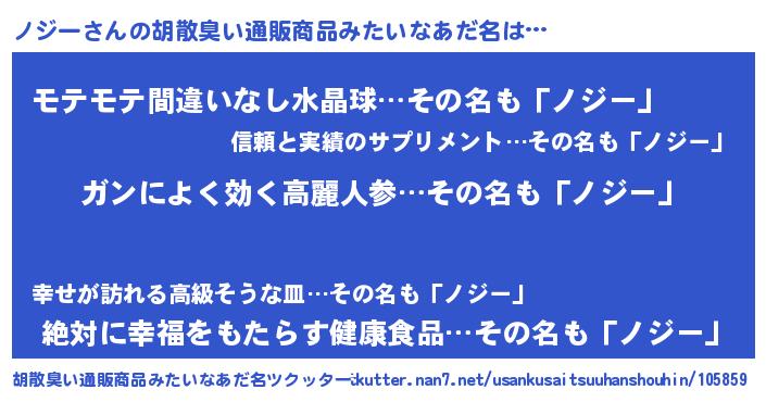 | ヘコむあだ名 | 『ノジふぇ~』『ノジー(遠い目)』 |