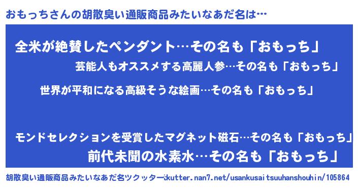 | 意味不明あだ名 | 『おもっちフォーエバー』『自称おもっち』 |
