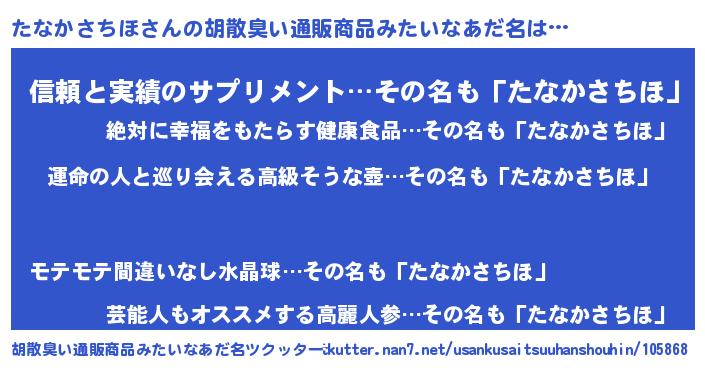 | 欧米人風あだ名 | 『たなかさちほクリステル』 |