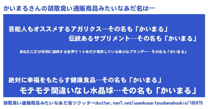 かいまるさんの胡散臭い通販商品みたいなあだ名をツクッター!