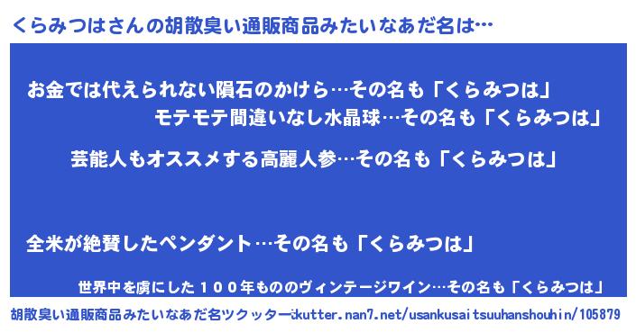 | 欧米人風あだ名 | 『くらみつは・ステッグマイヤー』 |