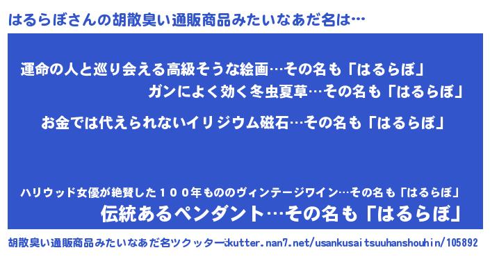 | 欧米人風あだ名 | 『ダニエルはるらぼ』『ウサインはるらぼ』 |