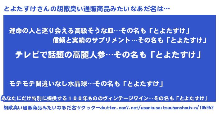 | ヘコむあだ名 | 『なまこ酢』『とよを』『とよもー』 |