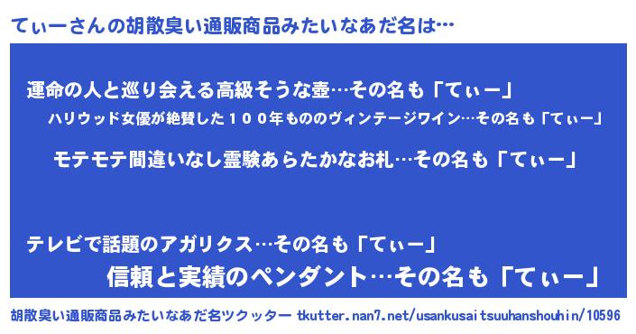 | 男性向けラノベタイトル風あだ名 | 『てぃーの憂鬱』『はたらくてぃーさま!』 |