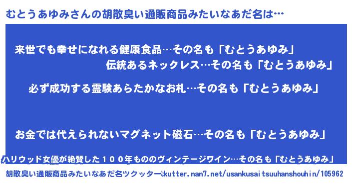 | 女子向けラノベタイトル風あだ名 | 『(仮)むとうあゆみのやんごとなき事情』 |