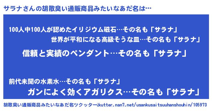 | 意味不明あだ名 | 『とにかく怪しいサラナ』『自称サラナ』 |