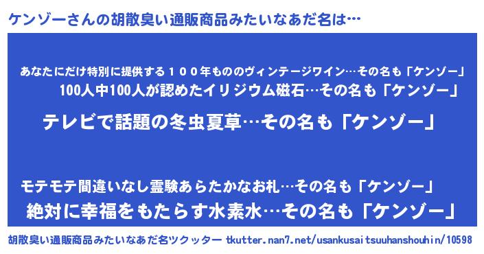 | ヘコむあだ名 | 『ケンゾー(震え声)』『ケンふぇ~』 |