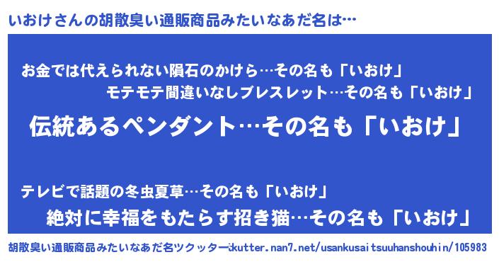 | 意味不明あだ名 | 『とにかく怪しいいおけ』 |