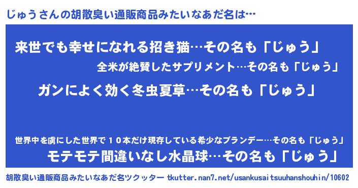 | ヘコむあだ名 | 『じゅう(遠い目)』『じゅにー』 |