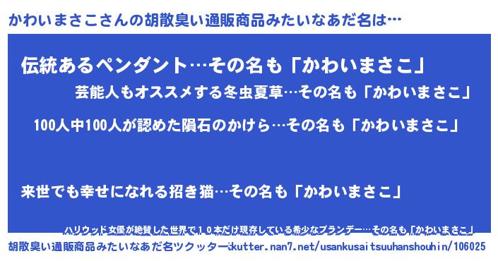 | ヘコむあだ名 | 『かわっちょ』『かわいまさこ(苦笑)』 |