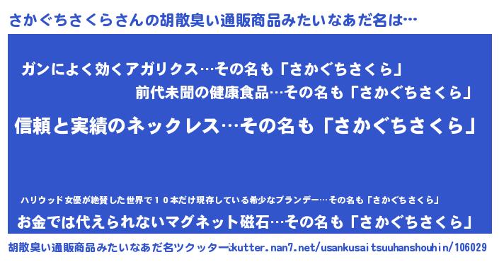 | 意味不明あだ名 | 『とにかく怪しいさかぐちさくら』 |