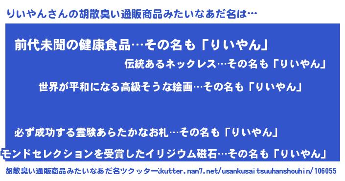 | 男性向けラノベタイトル風あだ名 | 『転生したらりいやんだった件』 |