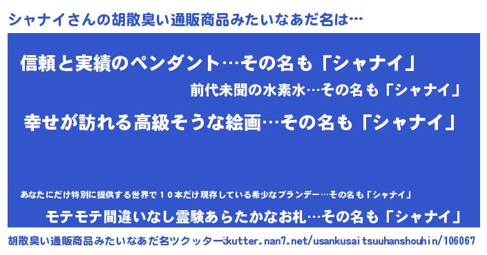 | 意味不明あだ名 | 『めかぶ科シャナイ属』 |