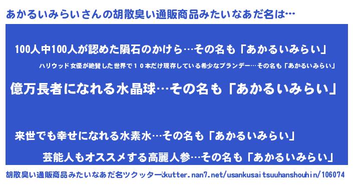 | ヘコむあだ名 | 『あかにゅー』『あかるいみらい(苦笑)』 |