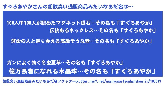 | 肩書あだ名 | 『すぐろあやか大統領』 |
