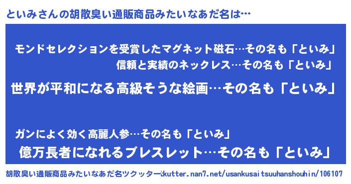 | ヘコむあだ名 | 『なまこ酢』『といにー』『といお』 |