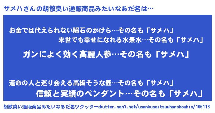 | 欧米人風あだ名 | 『ケンブリッジサメハ』『ダニエルサメハ』 |
