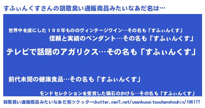| 意味不明あだ名 | 『自称すふぃんくす』 |