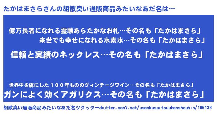 | 意味不明あだ名 | 『とにかく怪しいたかはまさら』 |