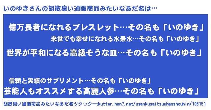| 意味不明あだ名 | 『いのゆきフォーエバー』『自称いのゆき』 |