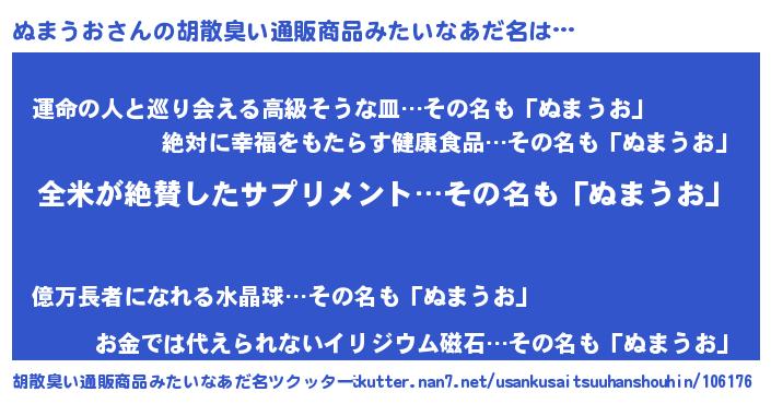 | 意味不明あだ名 | 『とにかく怪しいぬまうお』 |