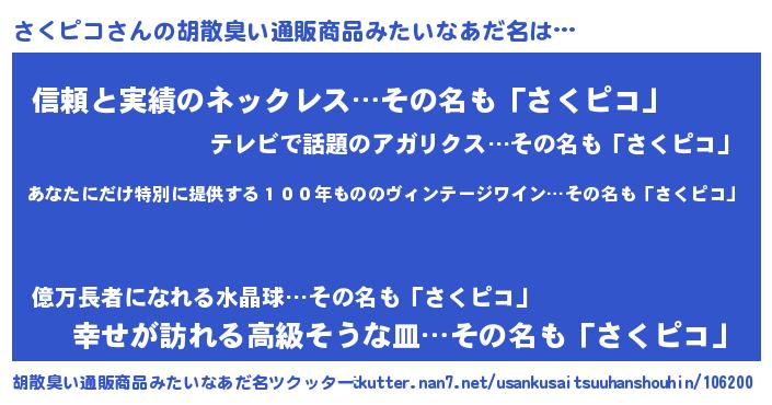 | 意味不明あだ名 | 『住所不定無職さくピコ(5歳)』 |