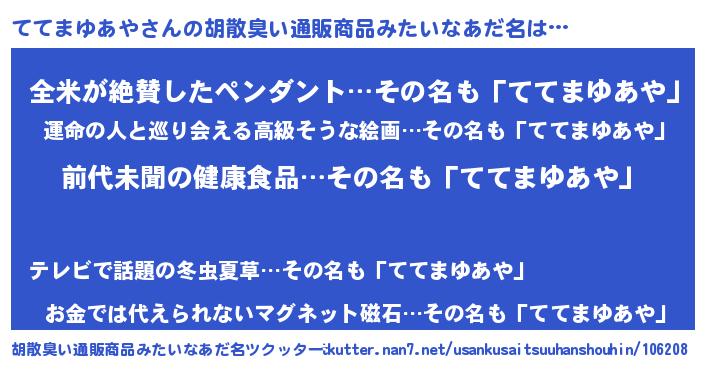 | ヘコむあだ名 | 『ててまゆあや(笑)』『ててっちょ』 |