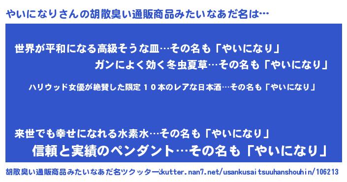 | 欧米人風あだ名 | 『トリンドルやいになり』 |