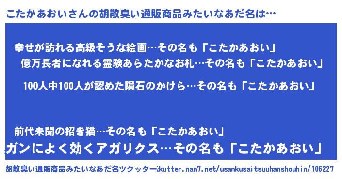 | 意味不明あだ名 | 『眠気覚ましガムこたかあおい味』 |