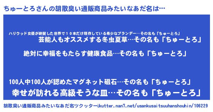 | 意味不明あだ名 | 『永久保存ちゅーとろ』『自称ちゅーとろ』 |