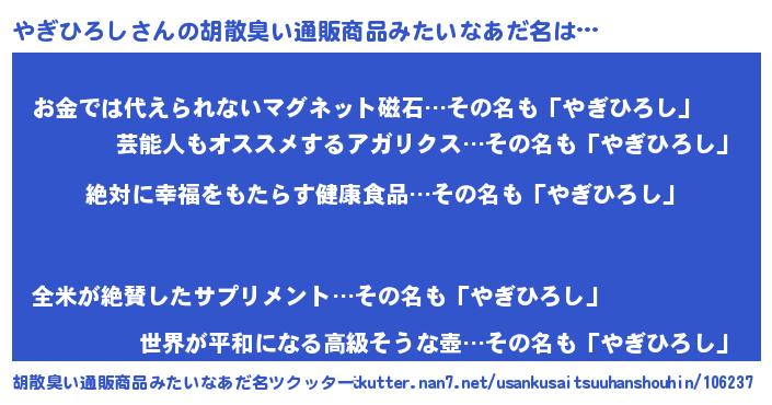 | ヘコむあだ名 | 『やぎひろし(笑)』『酢こんぶ』 |