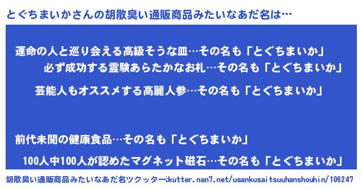 | 意味不明あだ名 | 『自称とぐちまいか』 |