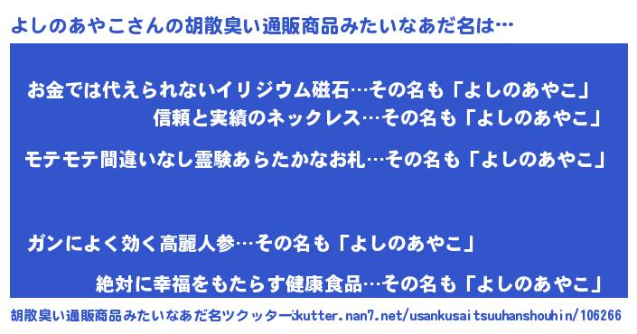 | ヘコむあだ名 | 『よしっふぃ~』『よしのあやこ(笑)』 |