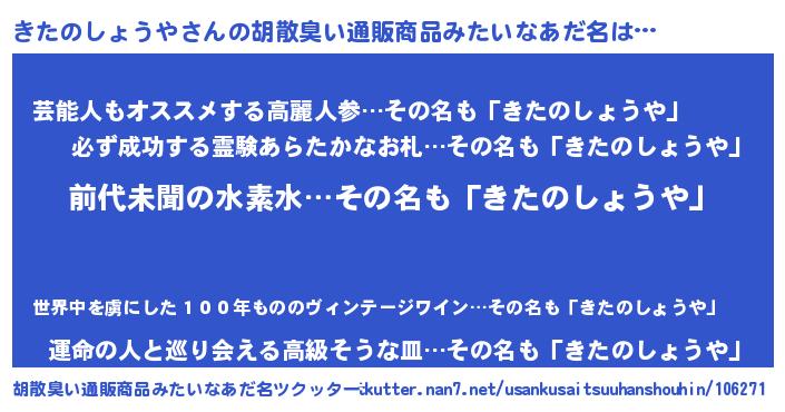 | 意味不明あだ名 | 『永久保存きたのしょうや』 |