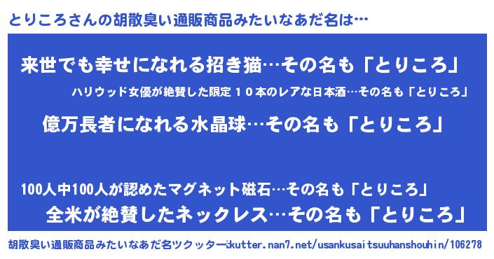 | ヘコむあだ名 | 『とりふぇ~』『とりころ(爆)』 |