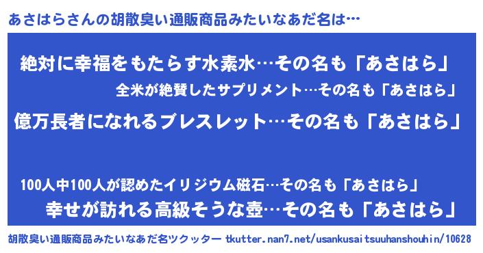 | ヘコむあだ名 | 『あさにー』『あさはら(遠い目)』 |