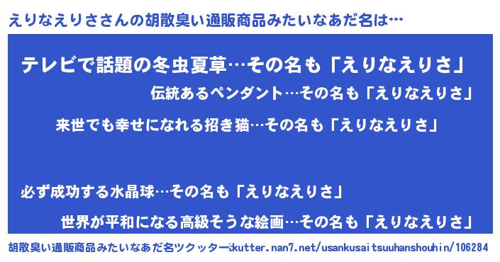 | 意味不明あだ名 | 『永久保存えりなえりさ』 |