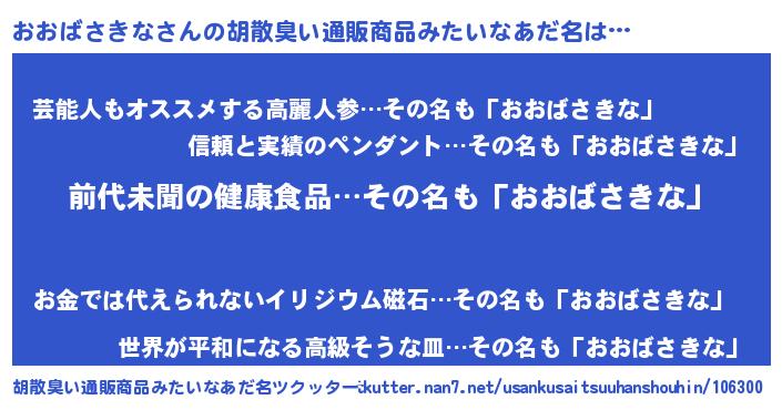 | 欧米人風あだ名 | 『ダルビッシュおおばさきな』 |