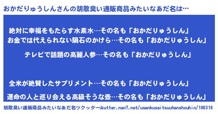 | 意味不明あだ名 | 『自称おかだりゅうしん』 |