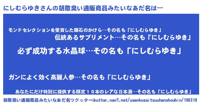 にしむらゆきさんの胡散臭い通販商品みたいなあだ名をツクッター!