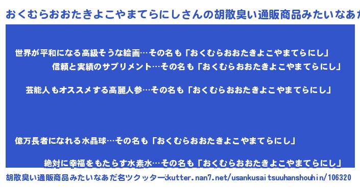 | 恥ずかしいあだ名 | 『オクムラオオタキヨコヤマテラニシデラックス』 |