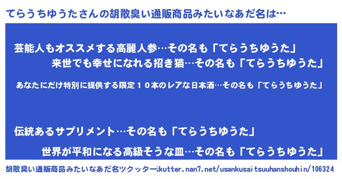 | 欧米人風あだ名 | 『ダレノガレてらうちゆうた』 |