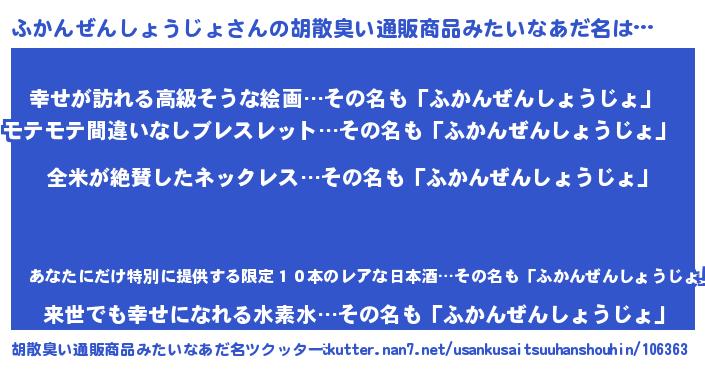 | 意味不明あだ名 | 『とにかく怪しいふかんぜんしょうじょ』 |
