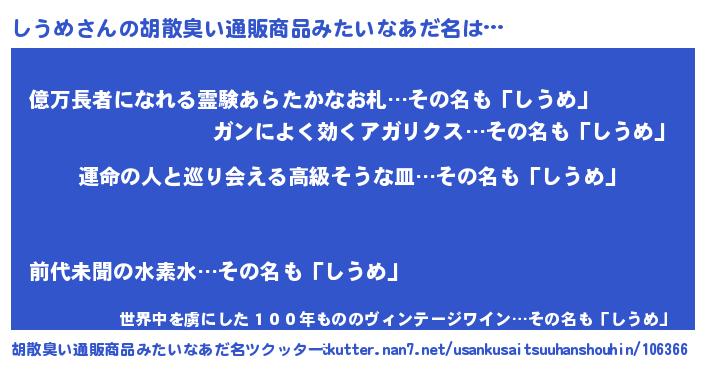 | 欧米人風あだ名 | 『しうめクリステル』『マイケルしうめ』 |