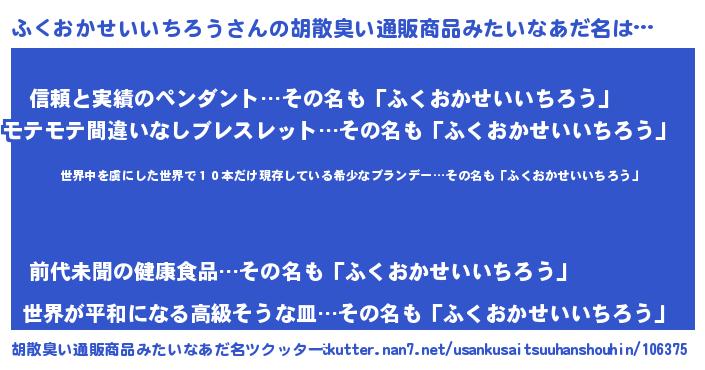 | 男性向けラノベタイトル風あだ名 | 『この素晴らしい世界にふくおかせいいちろうを!』 |