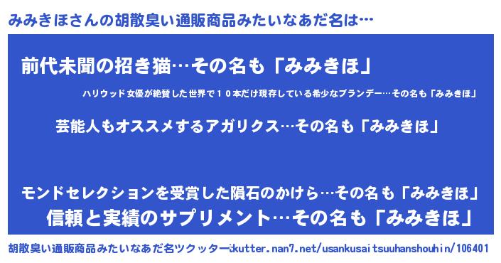 | ヘコむあだ名 | 『みみきほ(苦笑)』『みみっ子』 |